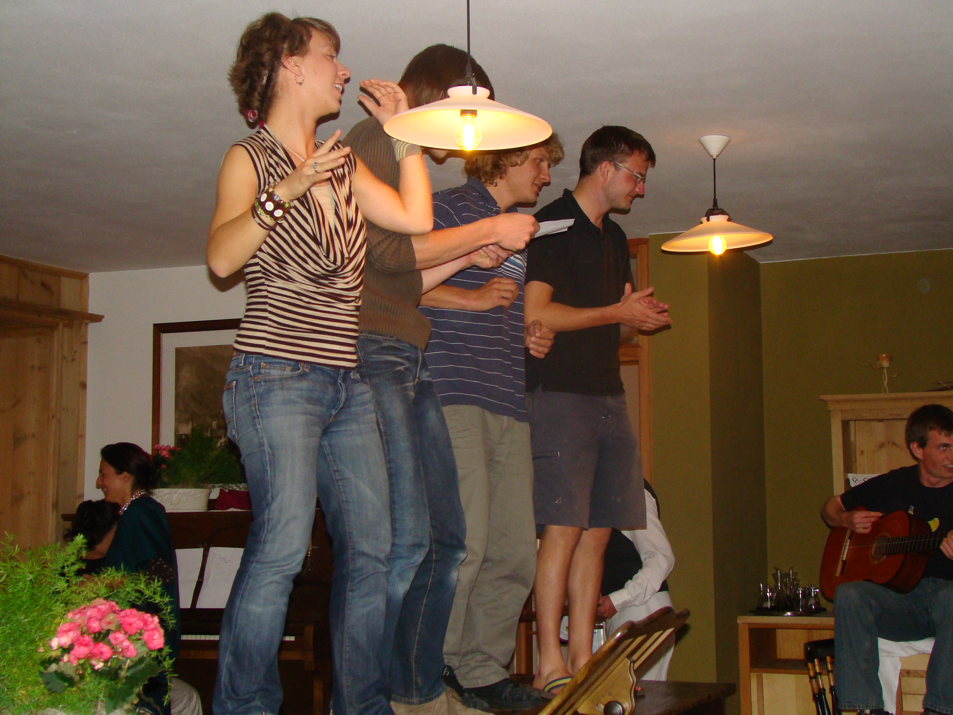 Traditionally the summer school has several musical events. This year we had two, both after dinner: one on Saturday the 13th and the other on Friday the 19th. Lyrics and more can be found here.